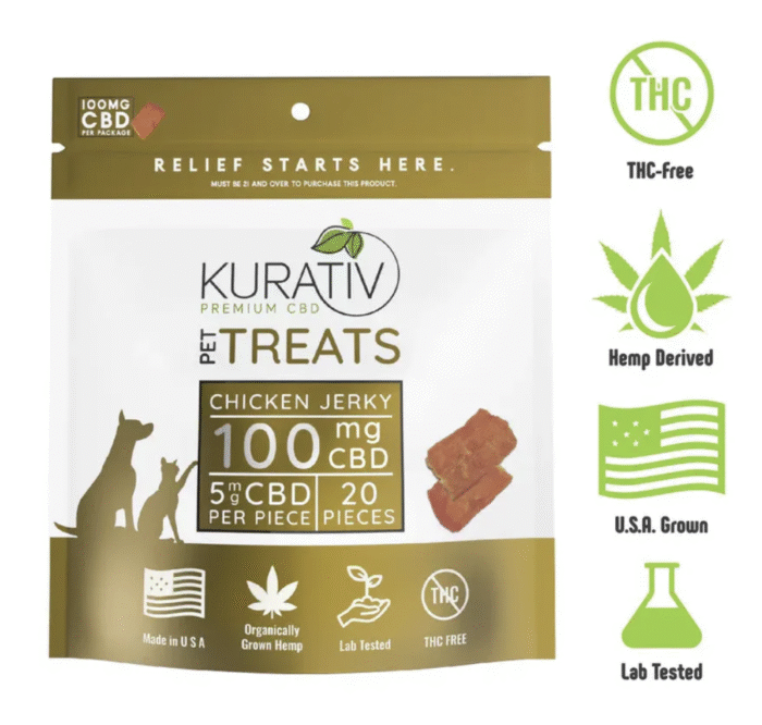 Kurativ hemp is sourced right here in the U.S. – Kurativ pet treats are no different. Kurativ pet jerky treats are made from U.S.D.A certified meats that are never imported. Kurativ formulate each treat with at least 5mg of pure CBD Isolate. Kurativ never met a pet that turned one down! Beef and chicken jerky are available in 100mg pouches.